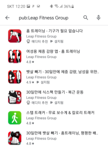 그중에서 제가 추천드리는 어플들은 전부 Leap Fitness Group에서 개발한 어플입니다.