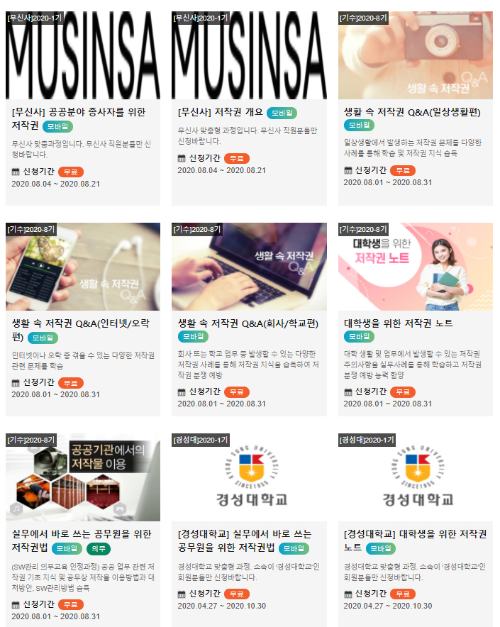 저작권에 관해 많이 알고 싶은 분들이 이용하면 좋은 동영상 교육들입니다.