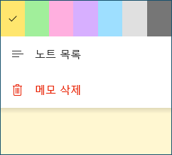 스티커 메모의 색상을 변경하는 방법은 다음과 같습니다.