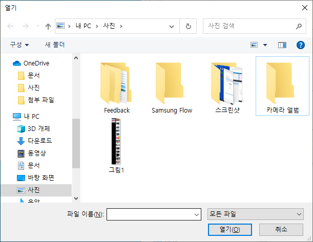 사진을 마우스로 선택한 후 끌고 오셔도 괜찮습니다.