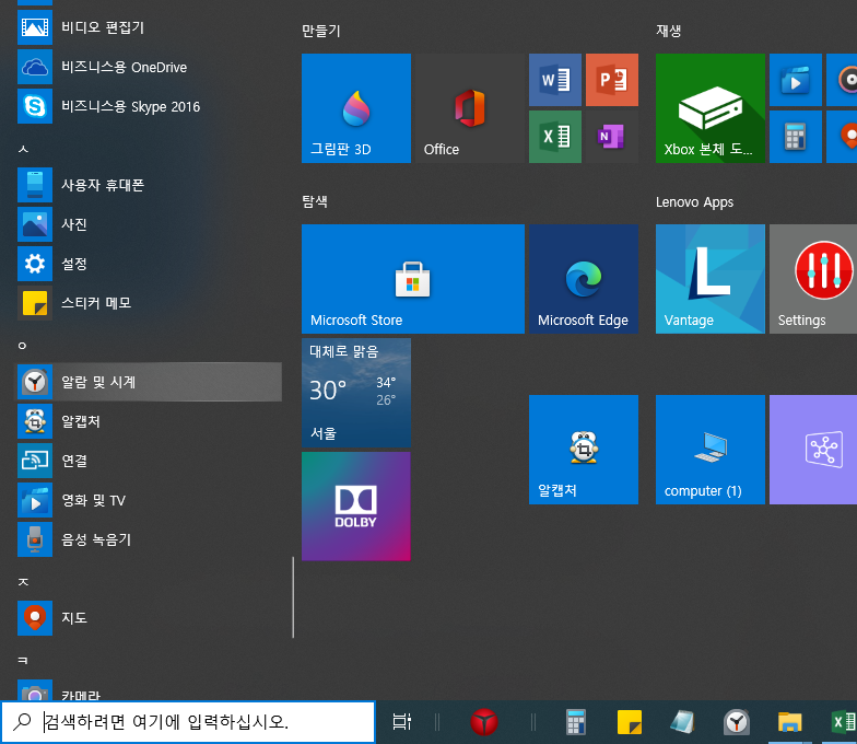 위도우10에서 알람, 타이머, 스톱워치를 이용할 수 있는 앱 이름은 "알람 및 시계"라고 합니다.