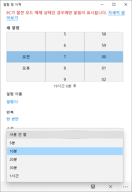 이상으로 윈도우10 "시계 및 알람"의 알람 기능에 대한 설명을 마치도록 하겠습니다.