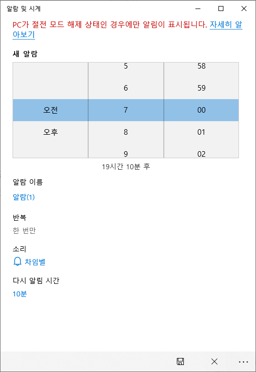컴퓨터 알람을 설정할 경우 핸드폰 알람과는 다르게