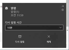 이상으로 윈도우10 "시계 및 알람"의 알람 기능에 대한 설명을 마치도록 하겠습니다.