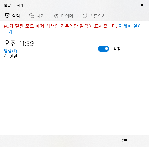 컴퓨터가 절전 및 전원이 꺼진 상태에서는 알람이 울리지 않습니다.