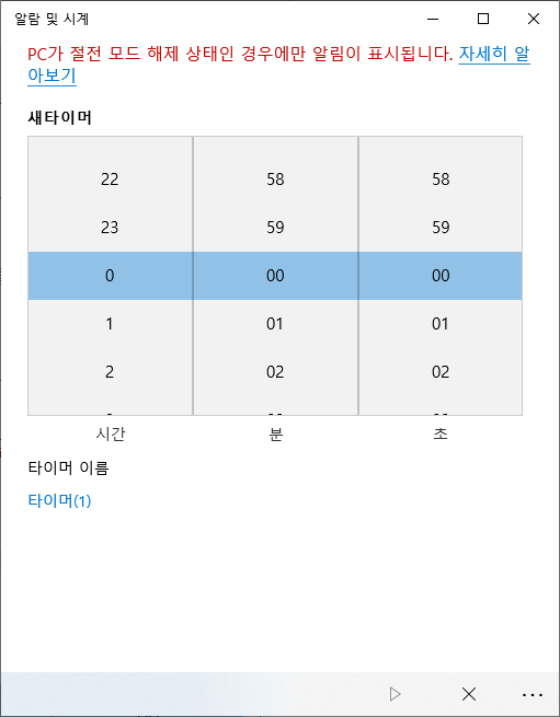 +버튼을 누르게되면 나오는 타이머 설정창입니다.